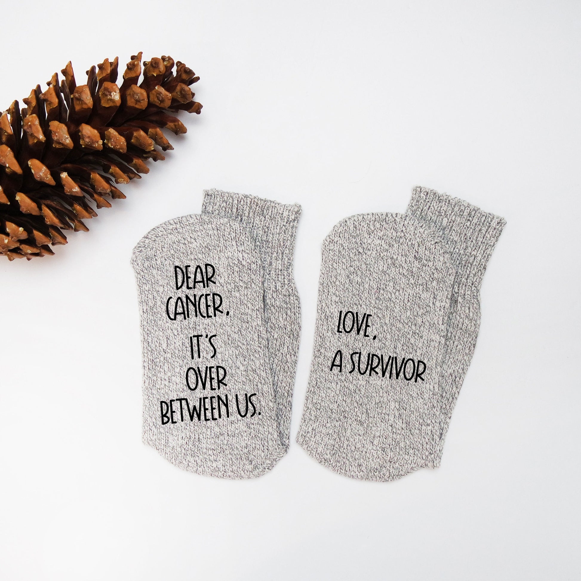 ♥ This listing is for the purchase of 1 pair of "DEAR CANCER, IT'S OVER BETWEEN US... LOVE, A SURVIVOR" socks.