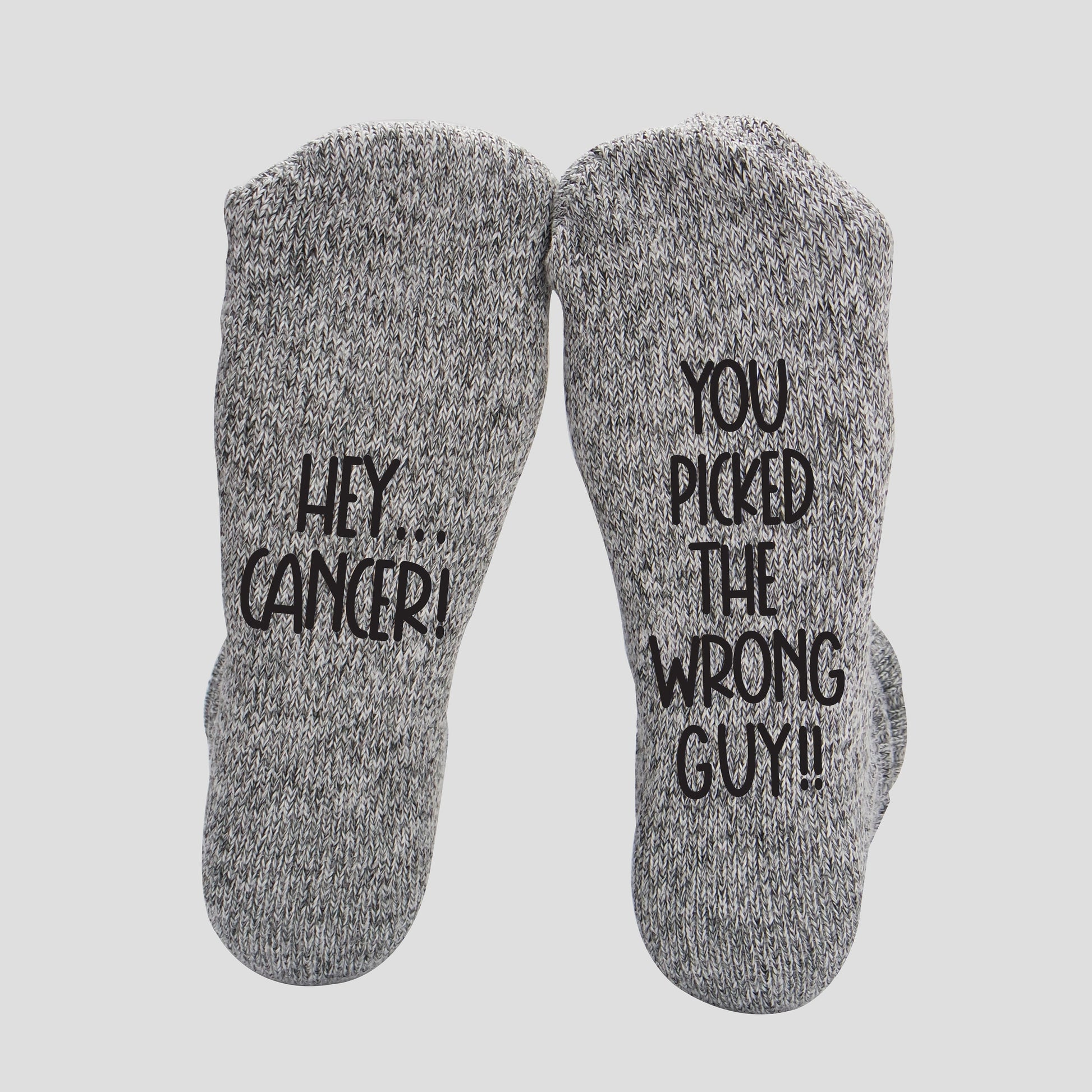 ♥ This listing is for the purchase of 1 pair of "HEY CANCER" ... "YOU PICKED THE WRONG GUY!" socks.