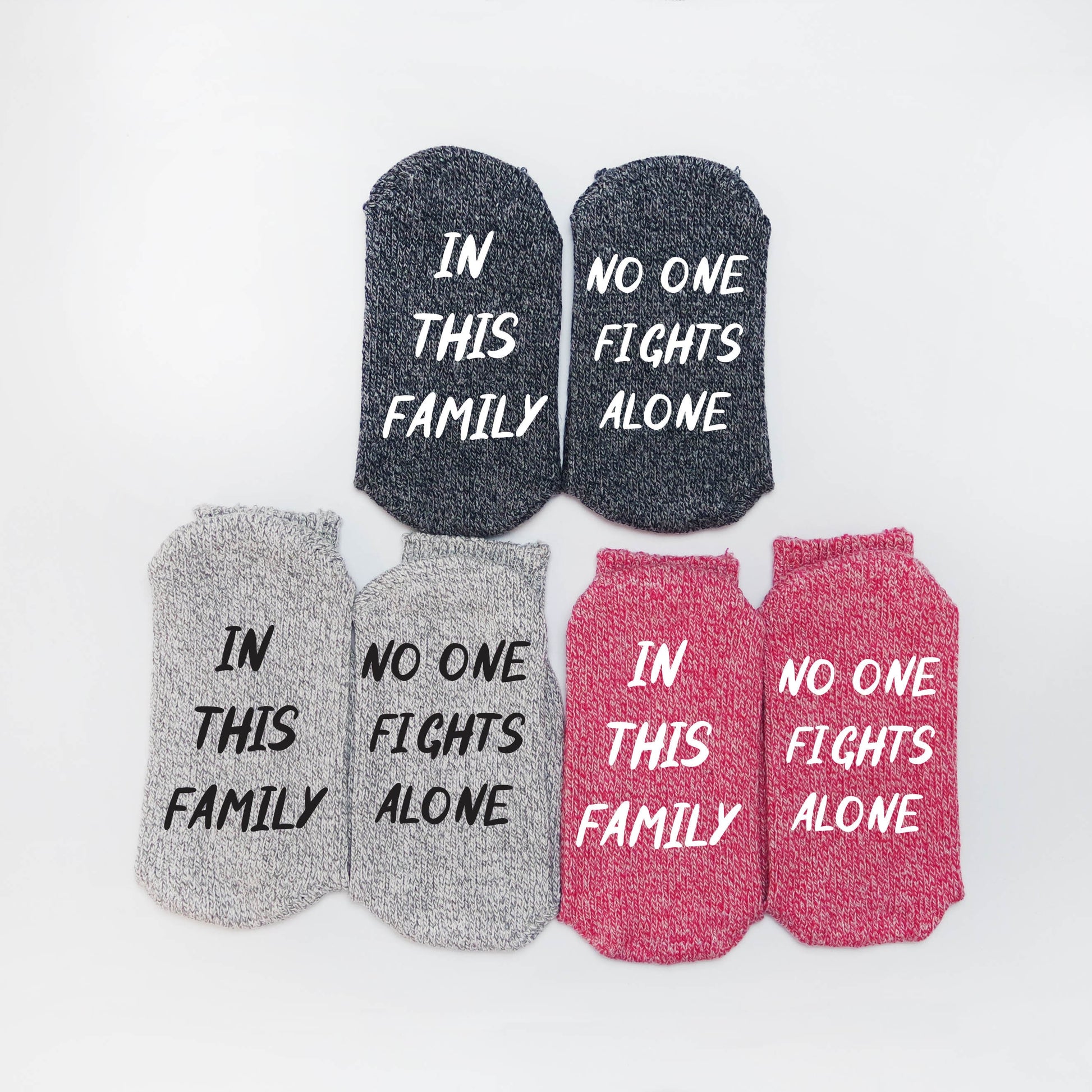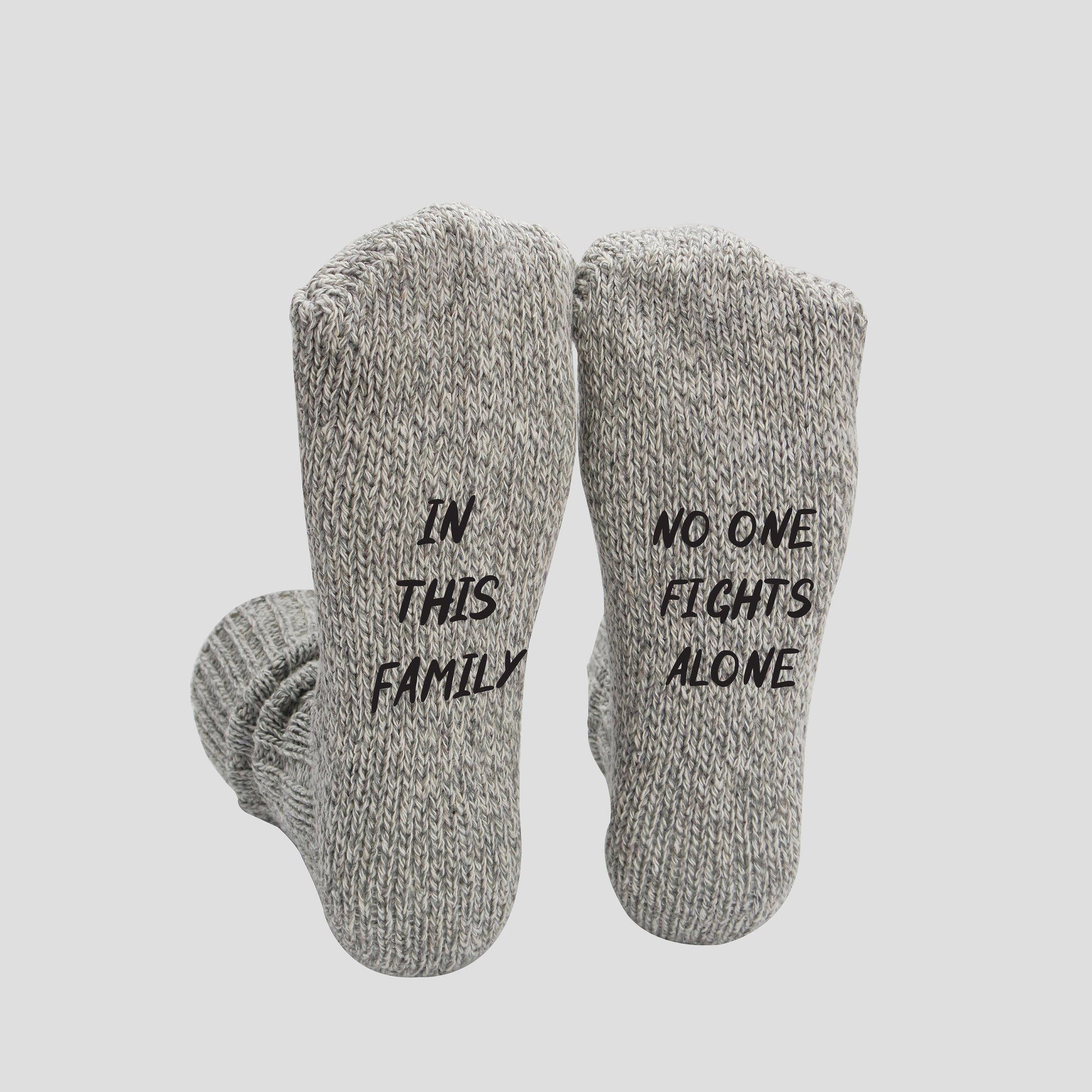 ♥ This listing is for the purchase of 1 pair of "IN THIS FAMILY...NO ONE FIGHT ALONE" socks.
