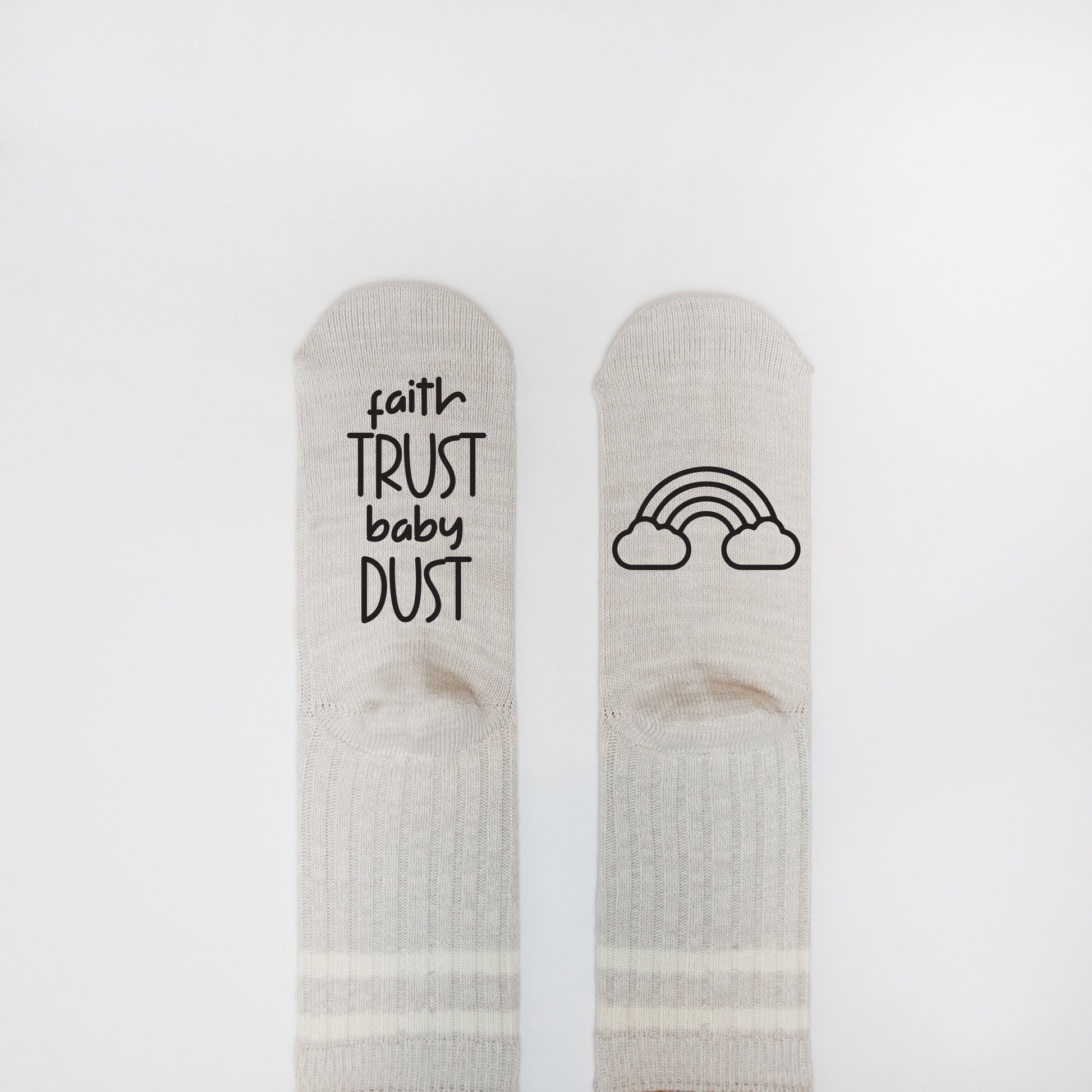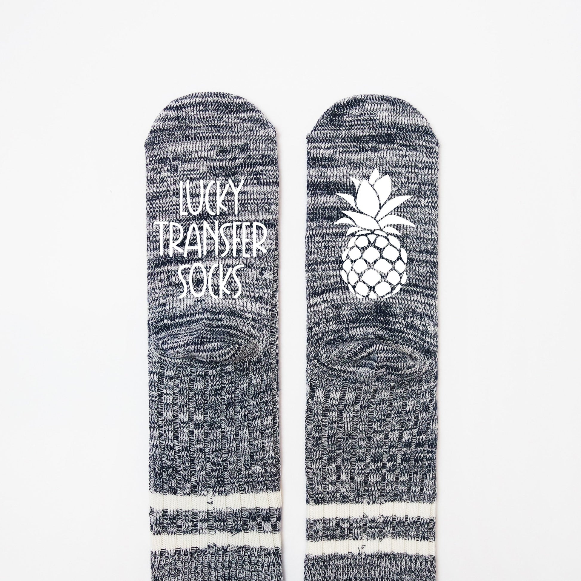 Lucky Socks for you to wear, or perfect as a gift. . These comfortable and stylish socks make the perfect personalized gift for the IVF journey. Lucky IVF socks are perfect for IVF treatments on retrieval day or on transfer day. You'll love these super comfy and warm IVF socks on your fertility journey. During and post egg retrieval in the IVF process, it is recommended that women keep their feet warm. These socks are a great gift for a friend or close one going through the fertility journey, to show support and let them know you are thinking of them. Perfect infertility gifts for women or inspirational gifts for pregnant women mom to be. These lucky socks could be the perfect pregnancy gifts, maternity gifts, mother to be gifts, mama to be gifts, mommy to be gifts, pregnant gifts, postpartum gifts. Great gifts for wife or mama on Christmas Day, Mother’s Day, Birthday, White Elephant Day or Holiday