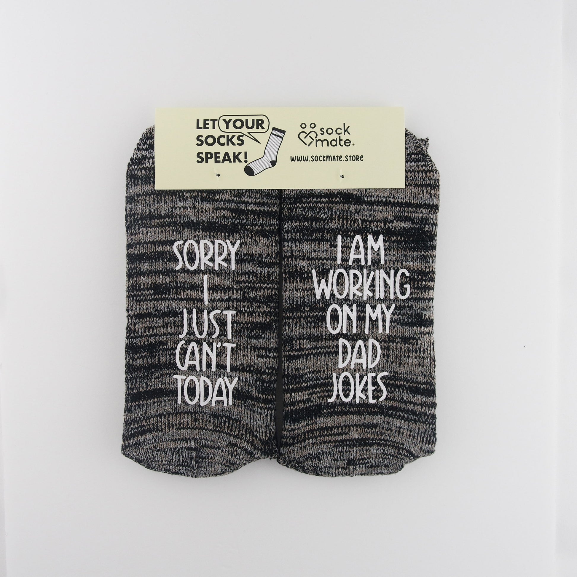 ♥ This listing is for the purchase of 1 pair of "SORRY I JUST CAN'T TODAY" ... "I AM WORKING ON MY DAD JOKES" socks.