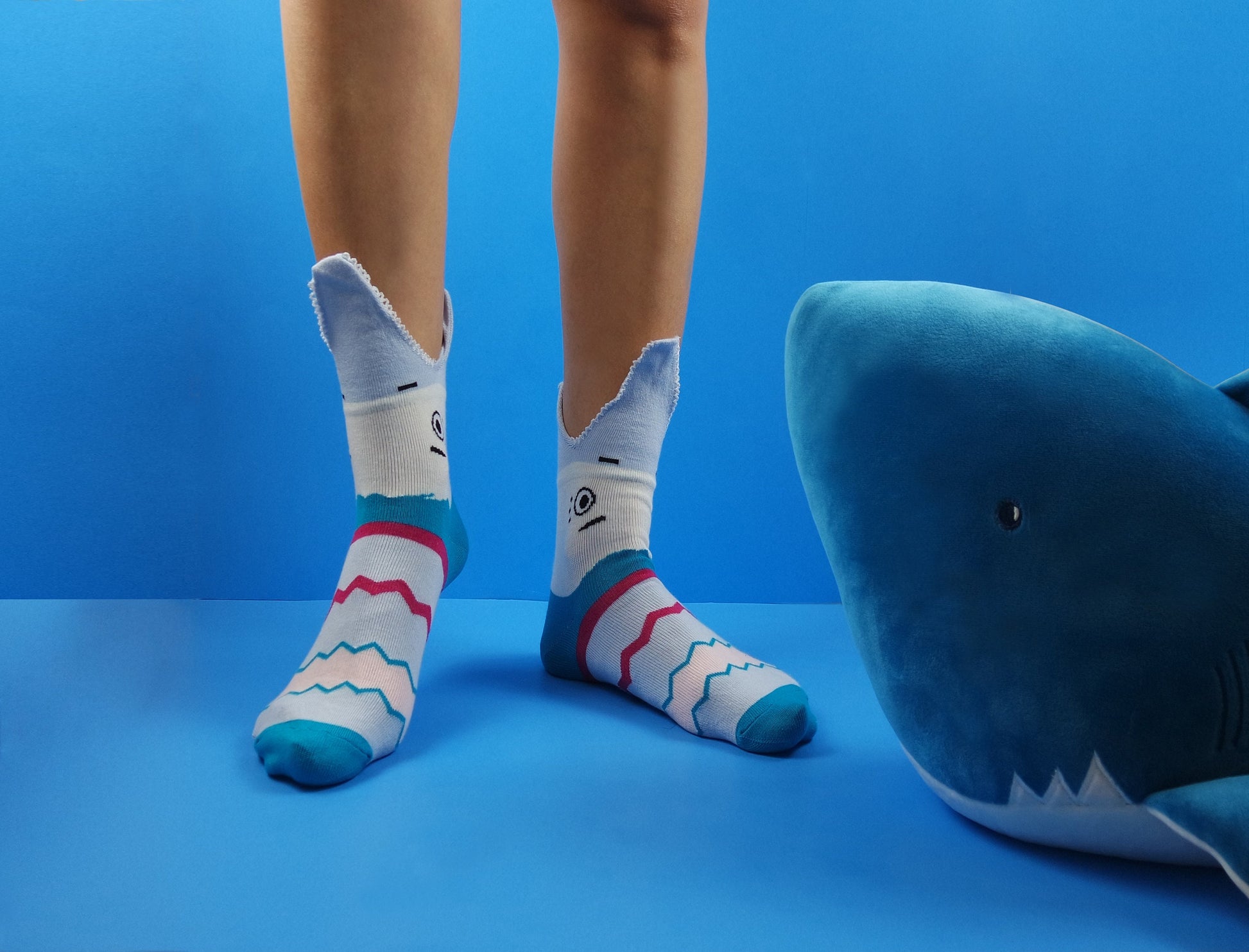 Swim with Style: Trendy and Fun 3D Kids Shark Socks "Dive into the world of fashion with our trendy and fun 3D Kids Shark Socks! 🦈🧦 These socks are perfect for little ones who love the ocean and its fascinating creatures. With their vibrant colors and lifelike shark designs, these socks will make every step a swimmingly good time! 🌊✨This 3D Shark - Animal Socks adds an exciting twist to a classic kid's accessory. The deep blue color comes with a unique shark design. Perfect for adding a touch of fun to any outfit.