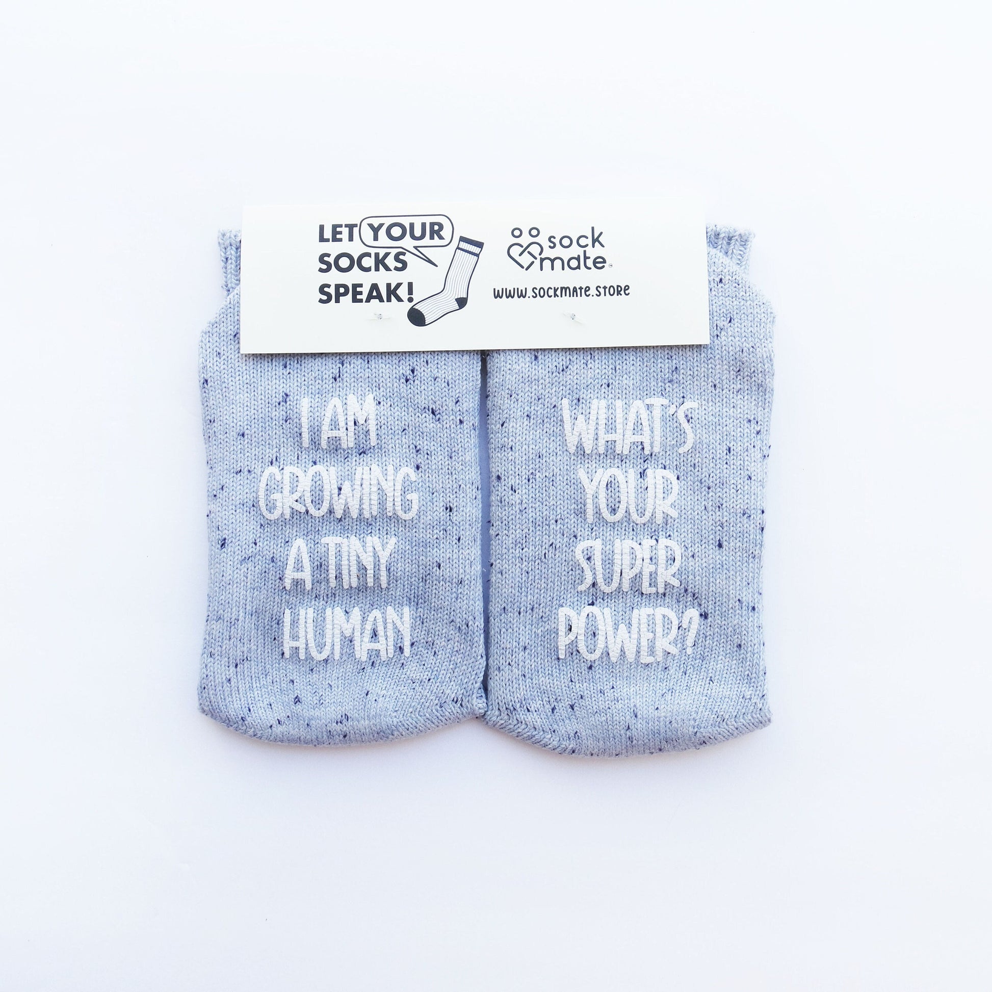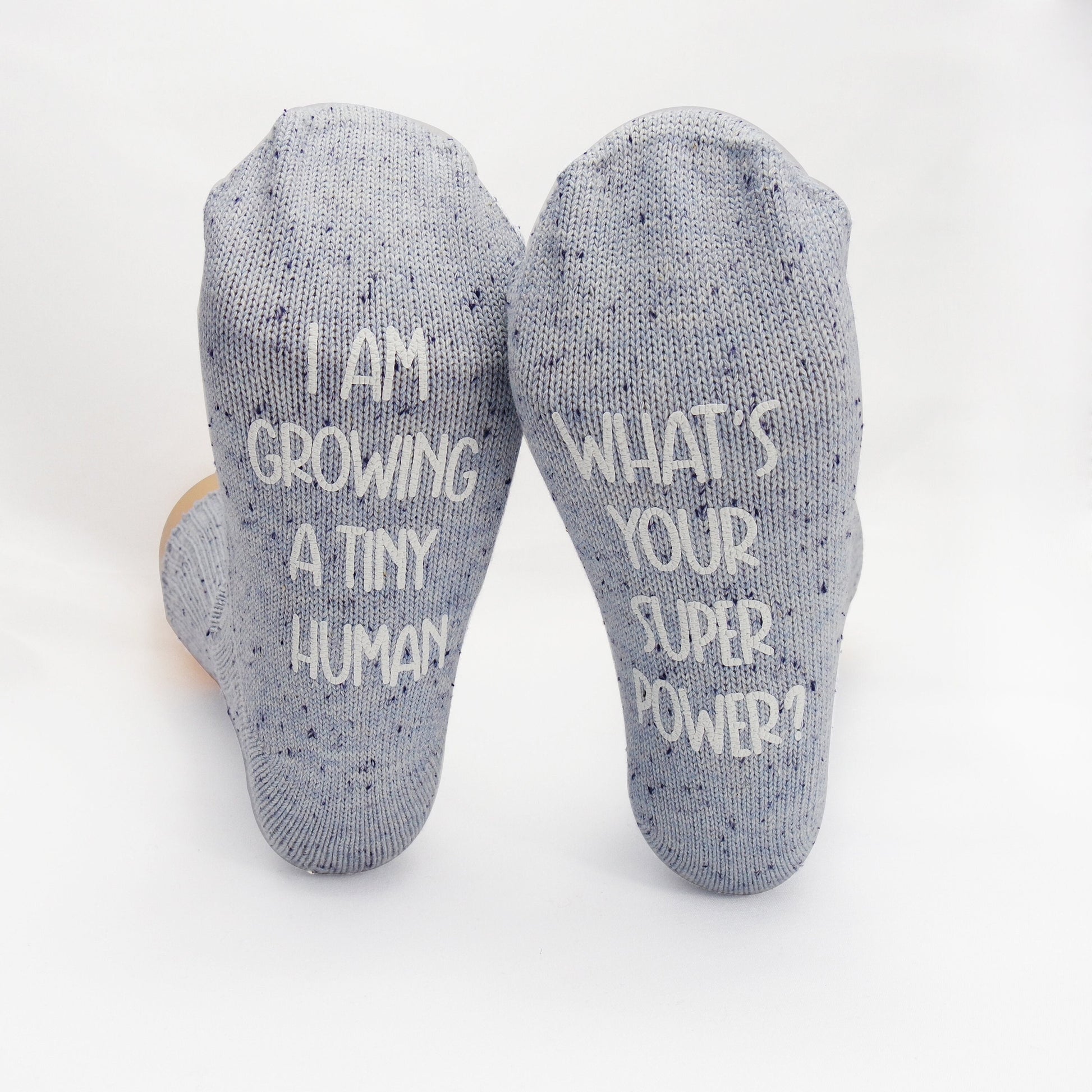 ♥ This listing is for the purchase of 1 pair of "I am growing a tiny human..What's your " socks.