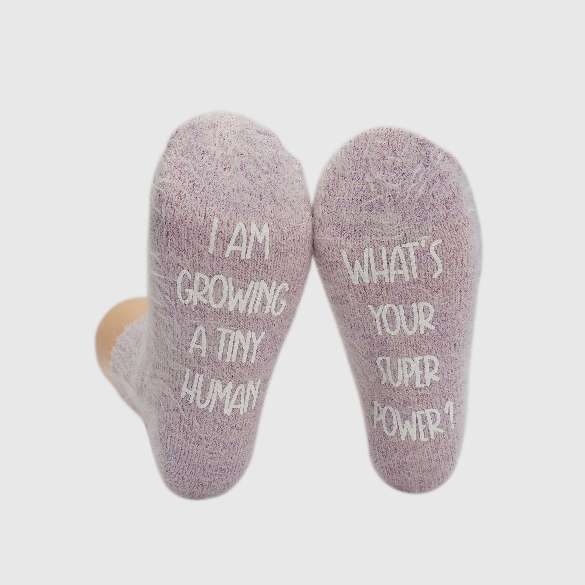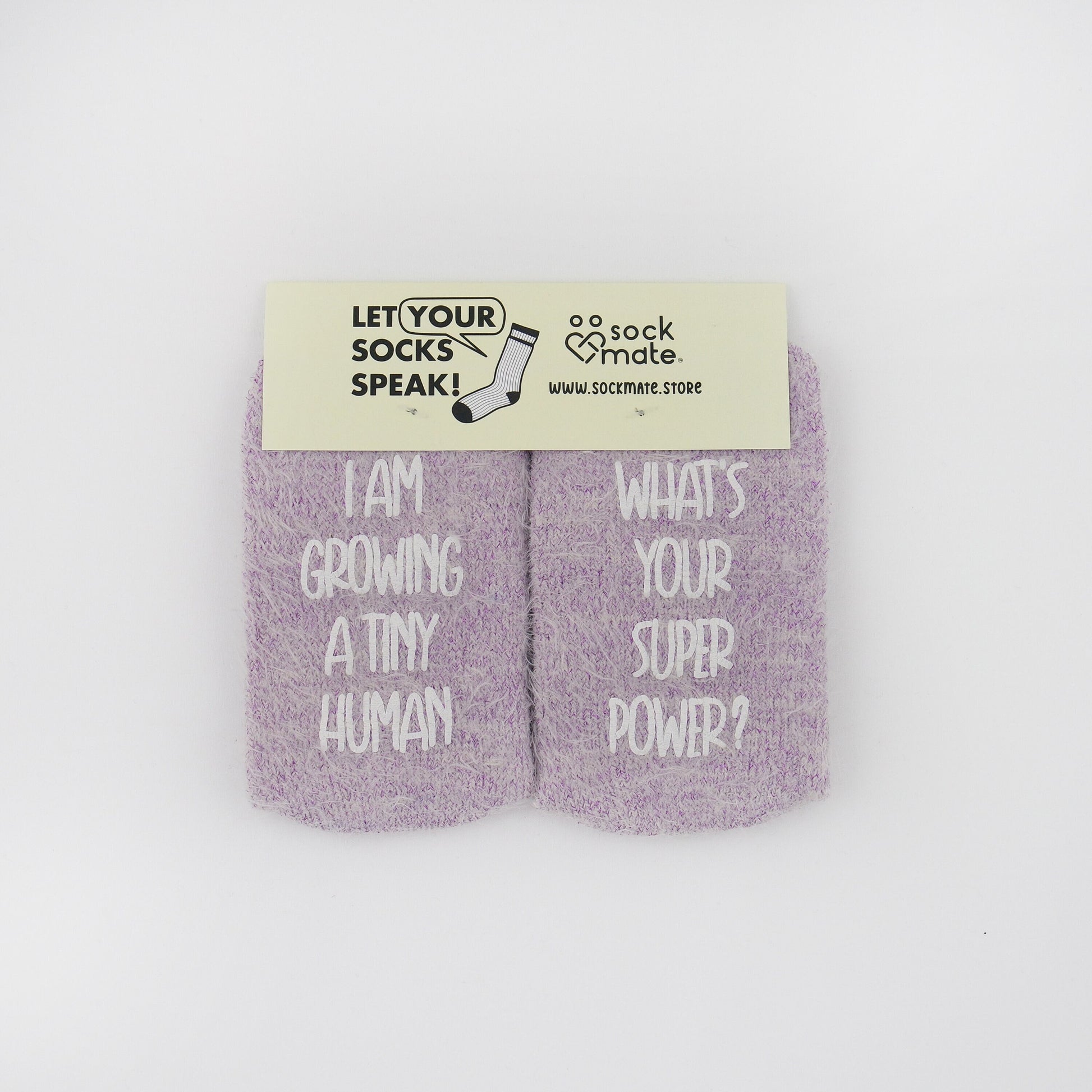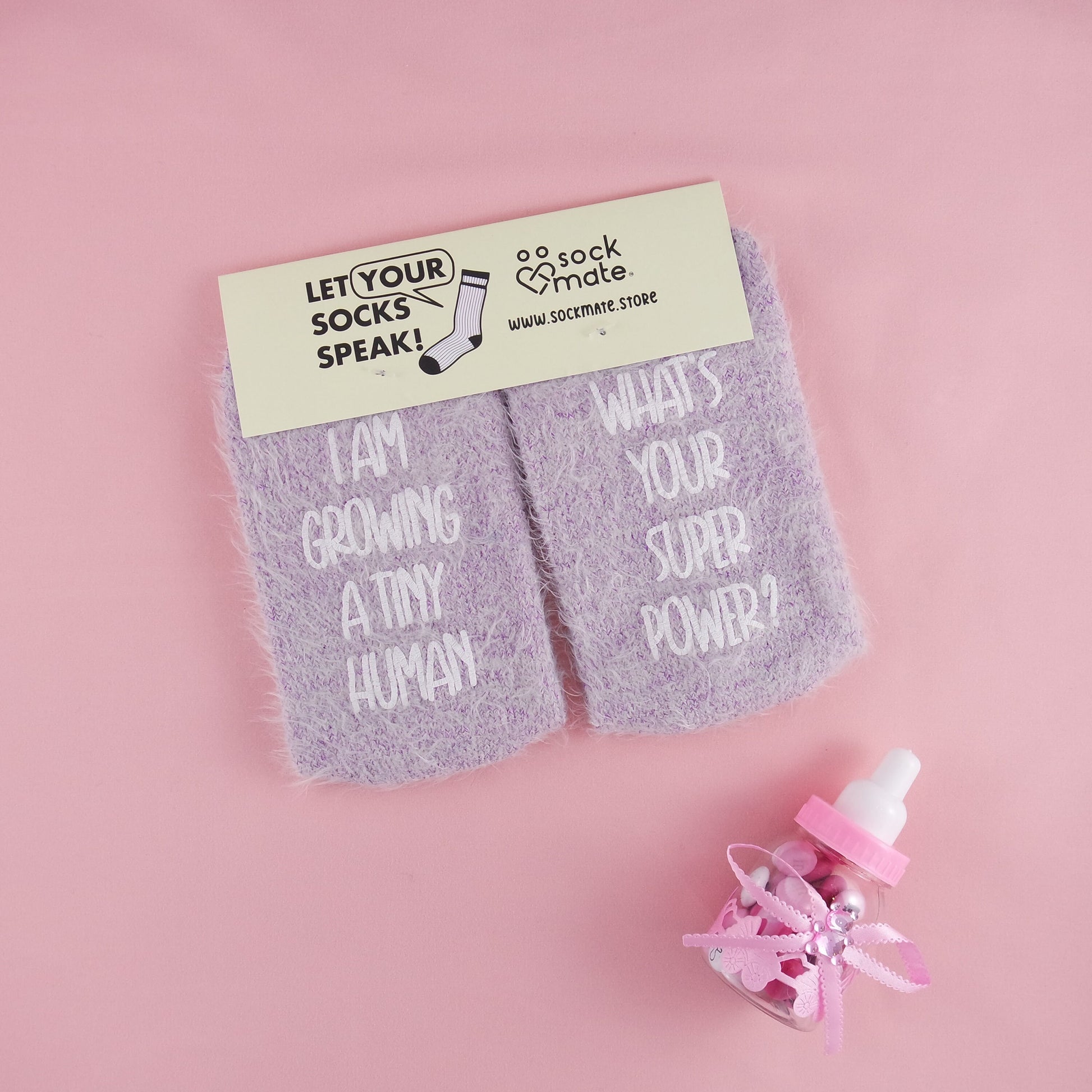 ♥ This listing is for the purchase of 1 pair of "I AM GROWING A TINY HUMAN...WHAT'S YOUR SUPER POWER" socks.