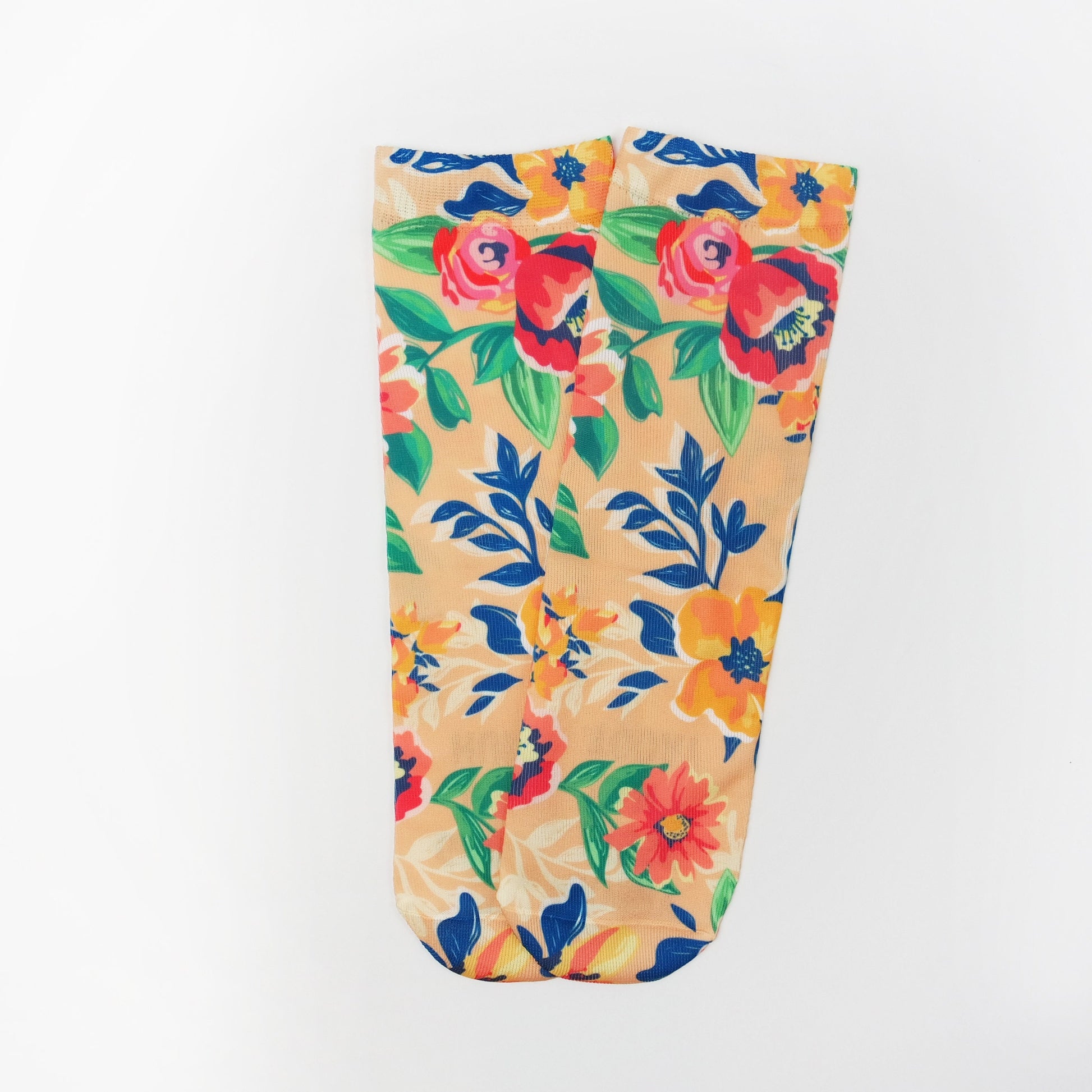 ♥ Polyester blend, lightweight, ankle-cut socks that can be printed with almost any digital design! Designs are front and back images that align to form a continuous pattern (there will be a visible seam where they meet).