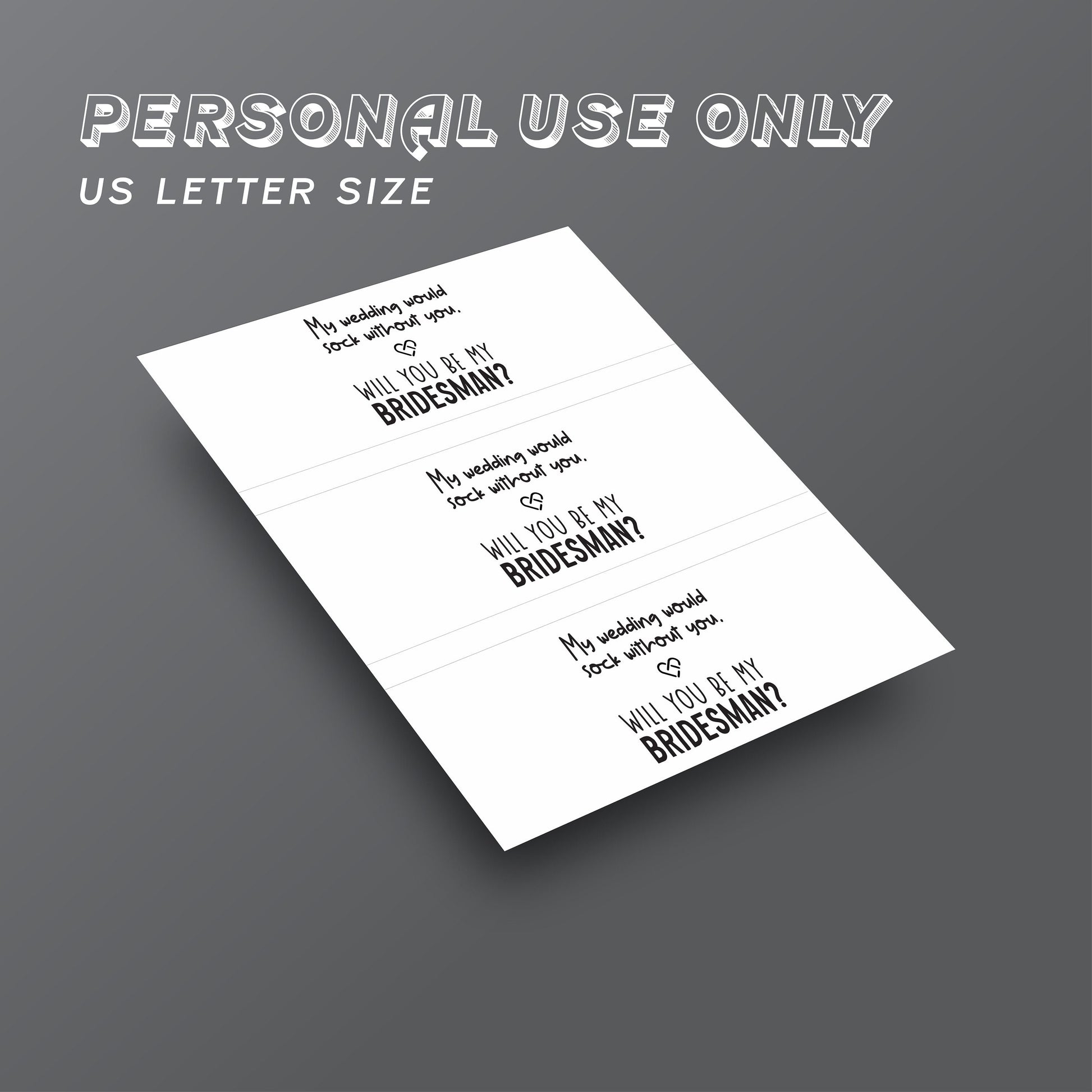 1 - 8.5" x 11" Letter: 3 labels on one letter sized page (if you want to have several). Proposal for Bridesman, Man Of Honor, Best Man, Groomsman