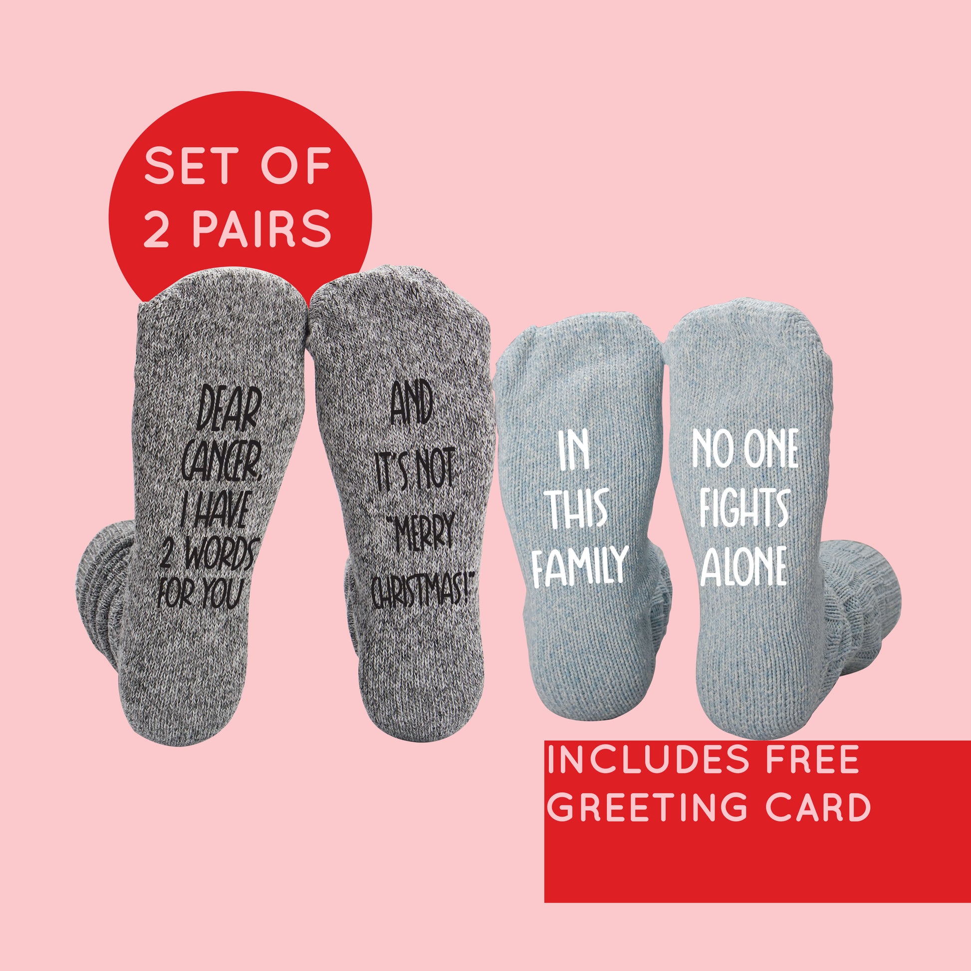 Lift their spirits and support their fight with cute and comfortable socks. It’s a small gift that lets them know that you’re thinking of them, and that they’ll love to wear! Perfect for cancer survivors, patients, their friends, their family, doctors, and chemo nurses - anyone who has been impacted by this terrible disease. Raise awareness, show support, and keep your feet comfy! Great gift idea for family friends who want to support their loved ones!