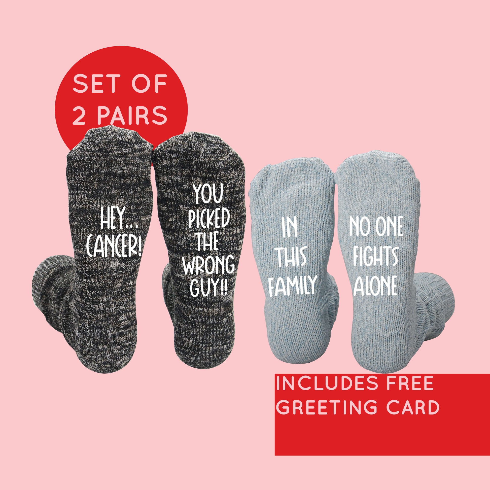 Lift their spirits and support their fight with cute and comfortable socks. It’s a small gift that lets them know that you’re thinking of them, and that they’ll love to wear! Perfect for cancer survivors, patients, their friends, their family, doctors, and chemo nurses - anyone who has been impacted by this terrible disease. Raise awareness, show support, and keep your feet comfy! Great gift idea for family friends who want to support their loved ones!