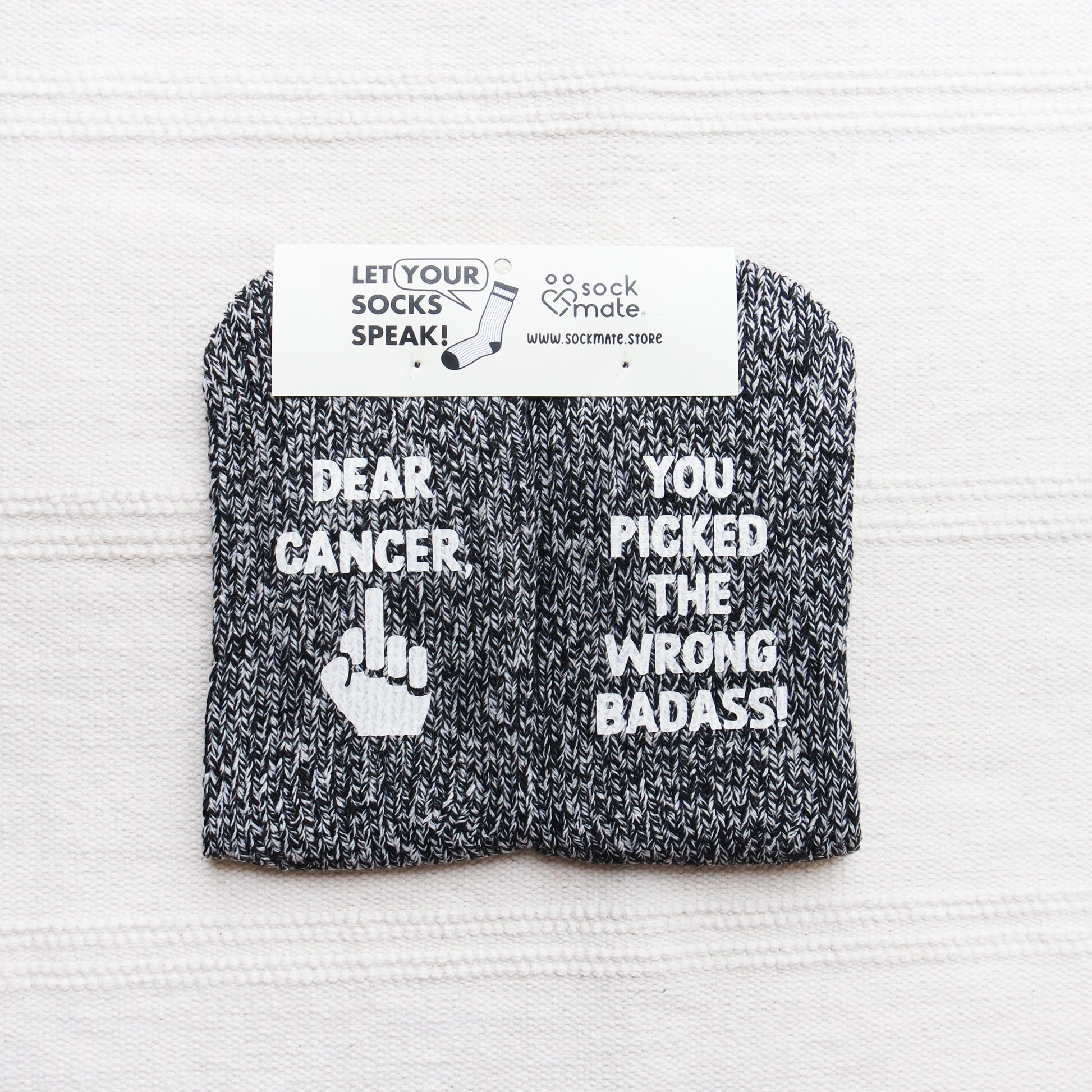 ♥ This listing is for the purchase of 1 pair of "Dear Cancer, You Picked the Wrong Badass" socks.