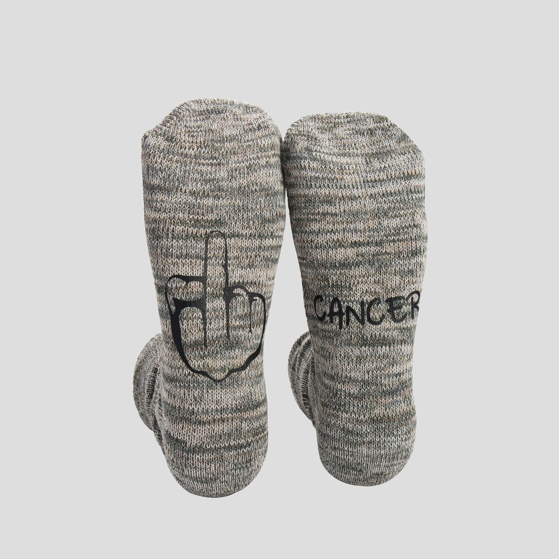 Introducing our empowering "fuck cancer" men's socks. These socks are a bold statement of defiance and strength, designed specifically for cancer survivors and those currently fighting the battle. These words encapsulate the resilience and tenacity that cancer survivors embody in their fight against this formidable disease. They make a thoughtful and meaningful Christmas gift that shows your support, encouragement, and admiration for their bravery in the face of adversity. Order your pair of "Middle finger with cancer" men's socks today and let your feet walk a path of courage, determination, and unwavering strength.