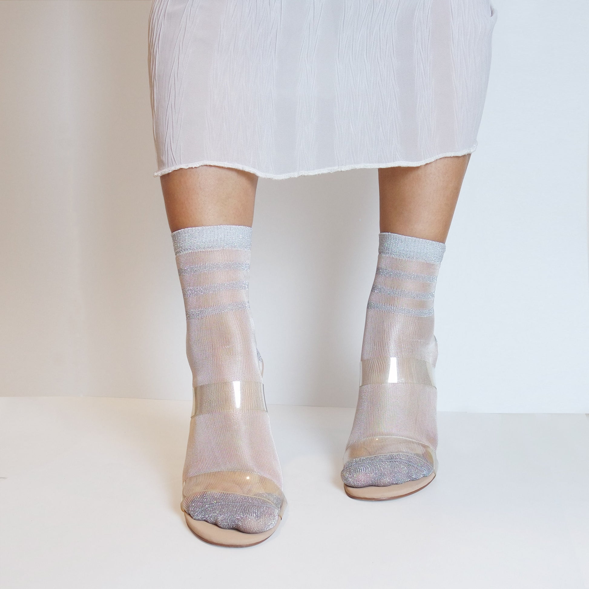 Women's Mesh, Sheer, Lace, Tulle Socks, Gold-Silver-Black Color Hosiery, Sexy Glitter Stripe Sock, Bridal Socks, Gift for Her, US Size 6-10